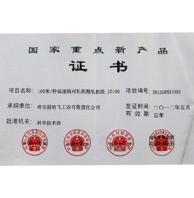 國家重點新產(chǎn)品證書